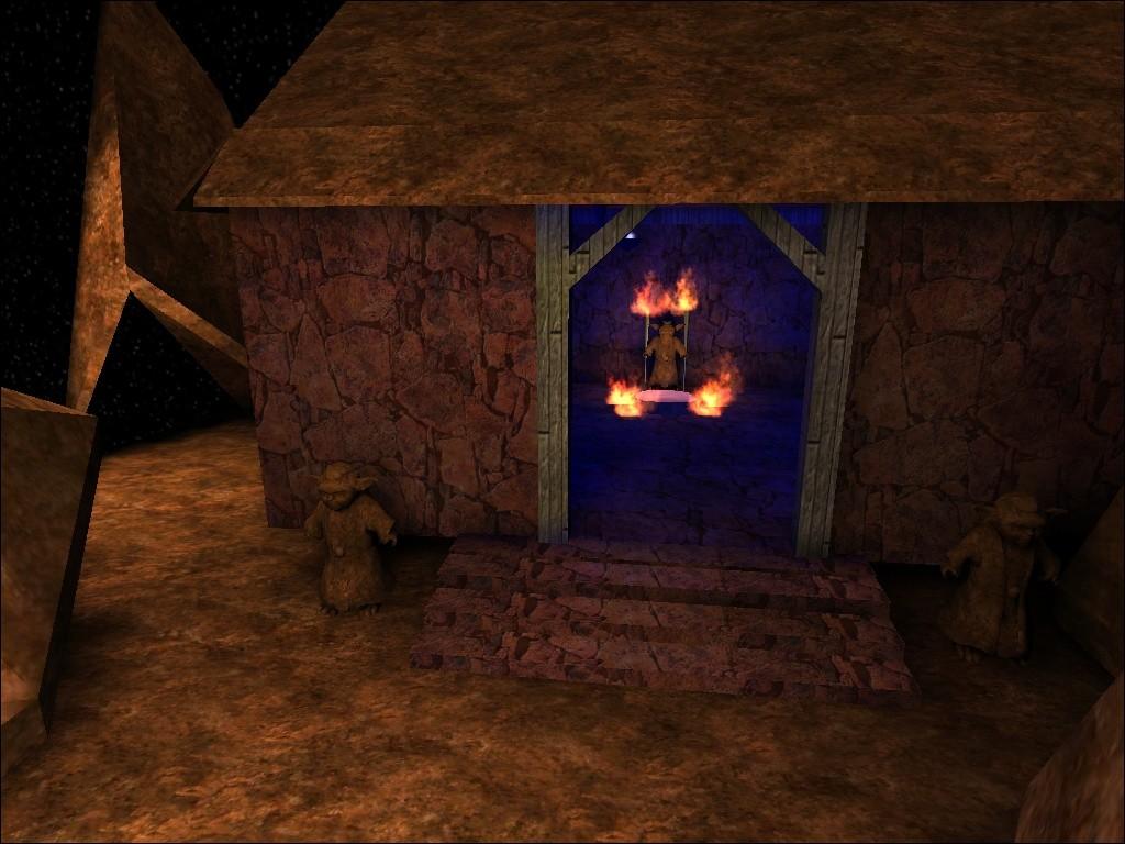 Middle door: Teleport to Sloda's room, secret area in here, sit in the meditation chair for a cool effect