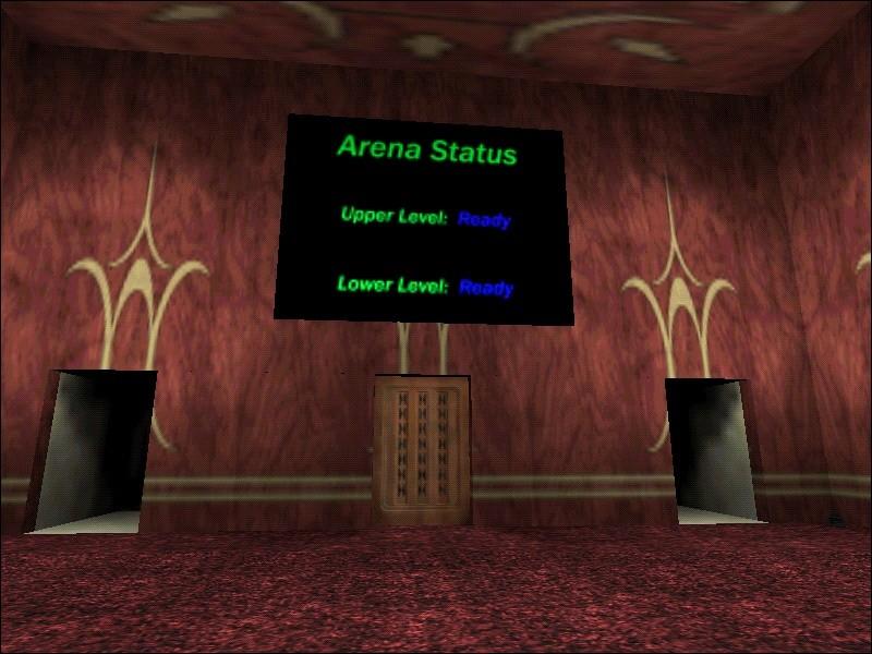 Additional Information : To enter the dueling area, you unfortunately need 3 people (2 for upper deck). Duelers enter the alcoves in the main arena, and the third person stays in the main balcony operating the switches to allow the duelists into the main chambers. Exits are hidden in the glass and can be found along the ground, in the wall facing the main balcony. To use the bacta dispenser (jediplus or jedi academy mods ONLY), stand so that you can only face one bacta canister at a time. Put the crosshair at the top of the bacta canister and use force push. The bacta appears on the bartop!