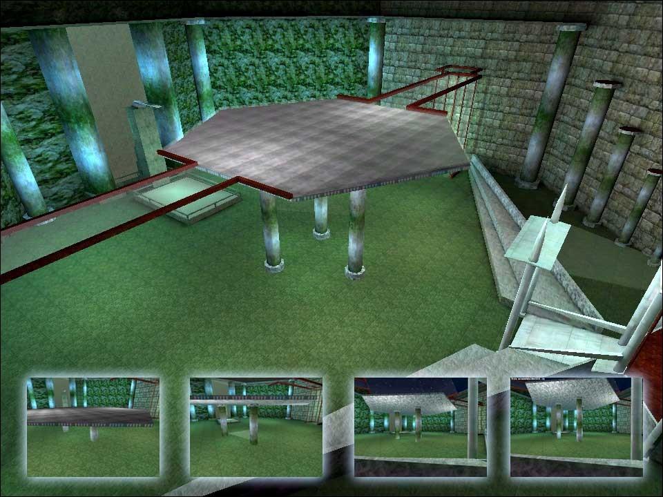 The map is geared for high frame rates so all doors function as area-portals, some of which have to be 'used.' All spawn in a central area with easy and quick access to the other areas. It has both bot and gun support. This is NOT a ctf map.