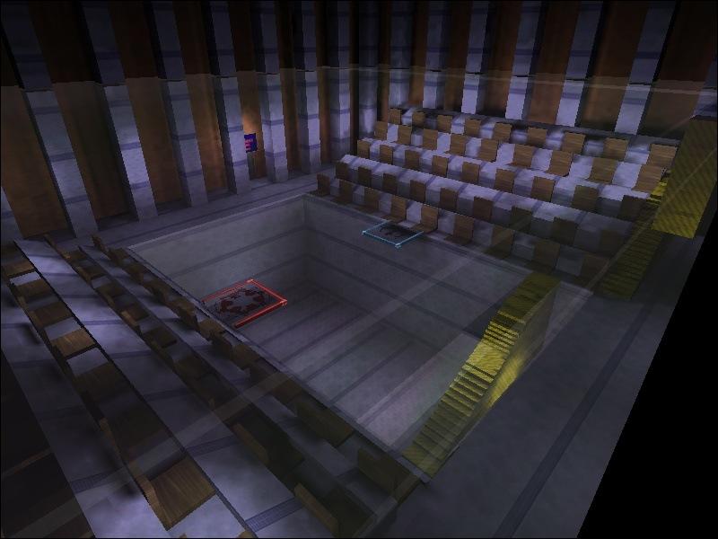 DESCRIPTION**: OK my map contains a basic duel arena with a GLASS floor & stairs leading down under the duel pad making it easier to watch duels...it also has stairs that go up above the duel pad with a glass layer that covers the whole upper section of the map as to be able to look down onto the map. My map has stadium stands in the front and back so that you can easily watch the duel without ever having to move or go into spectate mode, & it has a bar in the left portion of the map.