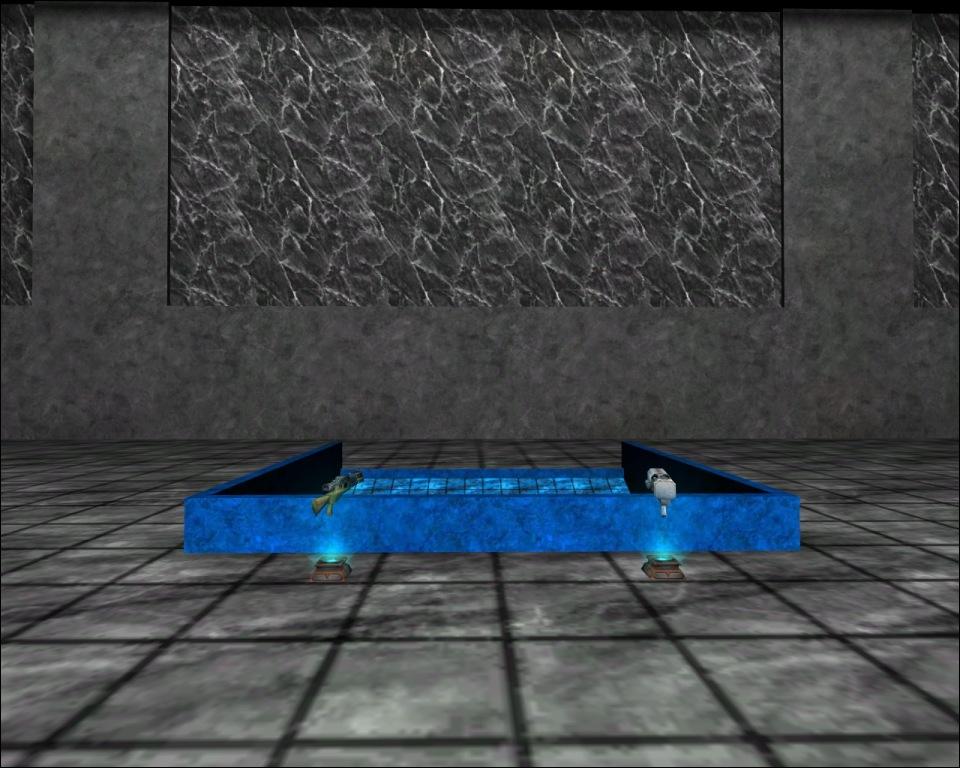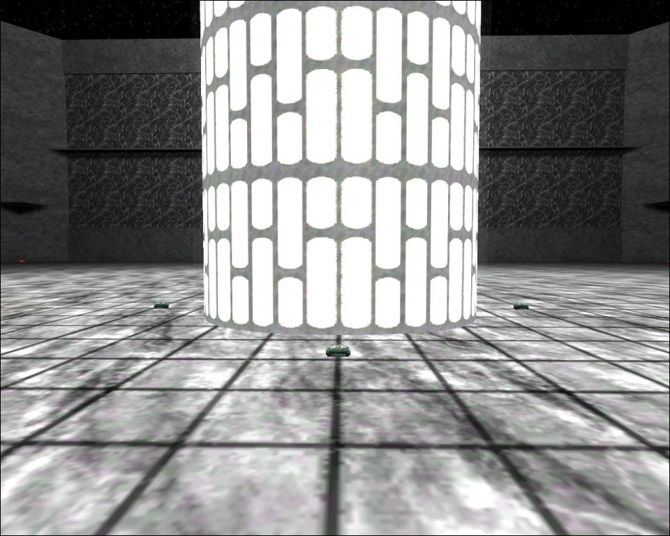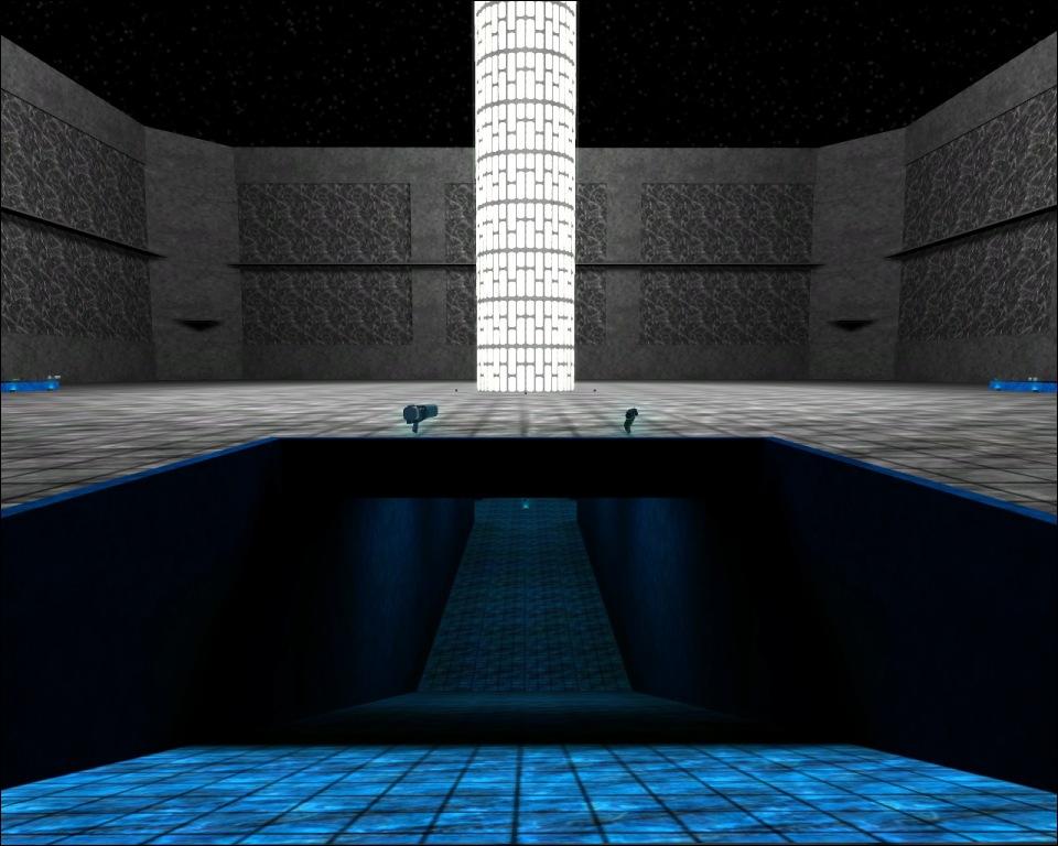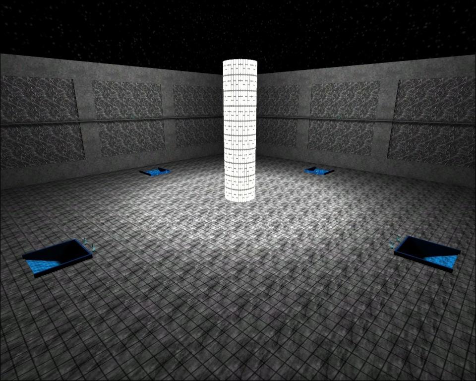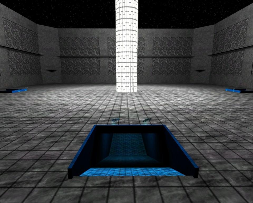 DESCRIPTION: Some what large size area, lower level intersecting hallways, mid height walkways on the walls, and a some what cool pillar of light in the center of the map.