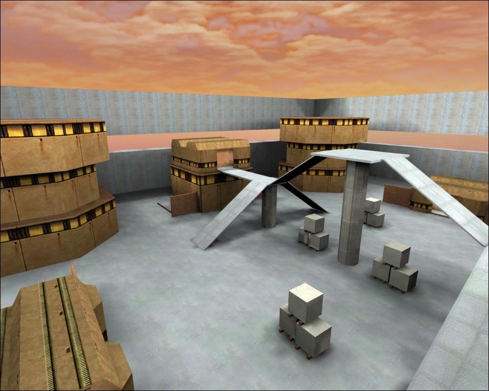 DESCRIPTION: Slighty larger map than it's sister map battle_area_#101 with four bases, center mid air platform, underground hallways going from one base to another, a odd building in each corner, and some secrets.
