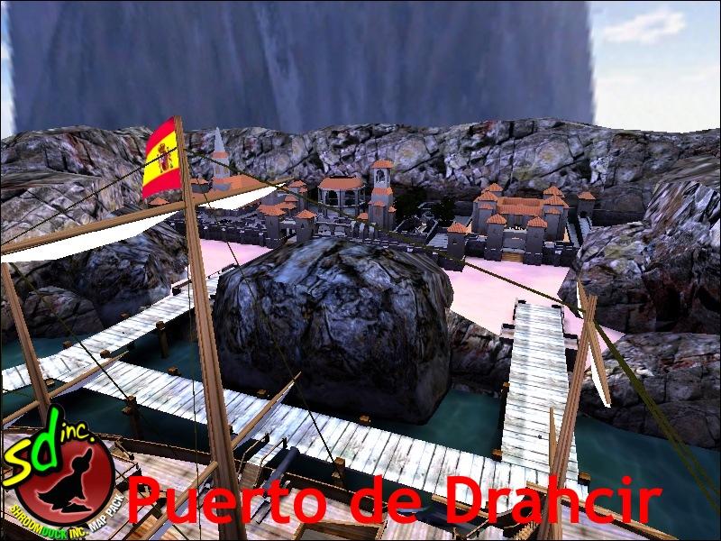 - Puerto De Drahcir- created by Drahcir. A scenic village placed along side a large ship. The picture in the ship's interior teleports the player to the at-sea battle! Two ships face off, fighting with emplaced guns and cannonballs!