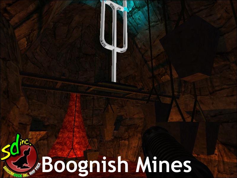 - CTF_BOOGNISH MINES- Concept by KaiStagon & ShroomDuck, created by KaiStagon, Drahcir, & Sirhc with help from rhiom, ook, lil binger, Kavu, and Blue. The immortal Boognish calls upon thee again! Two towers with destructable floors face each other, with flags nestled inside, and a mine shaft at the bottom. The control pannel in the heart of the mine activates the forcefield separating the two towers above ground. This map features a lot of brand new gametype techniques, as well as new mixed music made in the tradition of "ffa_ They Might Be Jedi's" iconic background track.