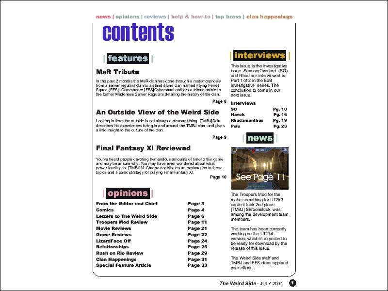 The name may have changed but the focus has remained the same. The Weird Side is an electronic publication printed for all walks of life. The views of all authors contributing to TWS Magazine are not necessarily the views of The Weird Side, TMBJ, or FFS. The main concept of this magazine is to talk about the peripheral topics involving the gaming world with insight from the FFS and TMBJ clans.