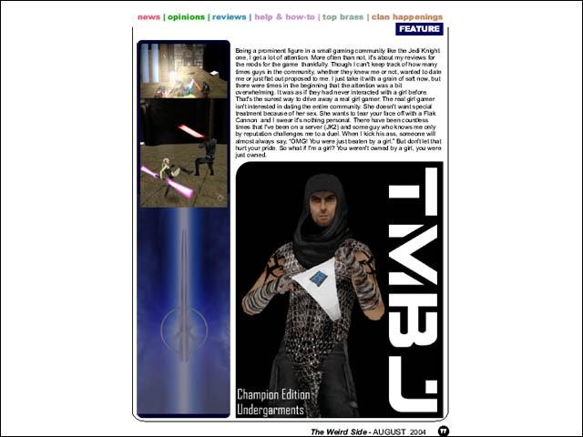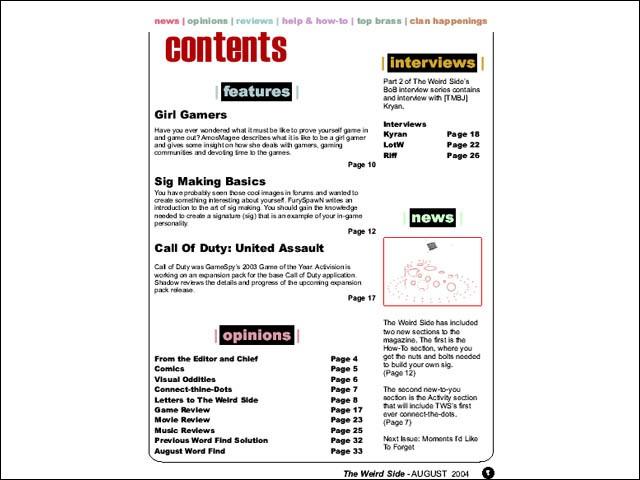 This Issue: Girl Gamers, Sig Making Basics, [TMBJ]Kyran interview, CoD: United Assault, Feet and Cheese, Connect-Thine-Dots, Modder Interview and movie and music reviews.