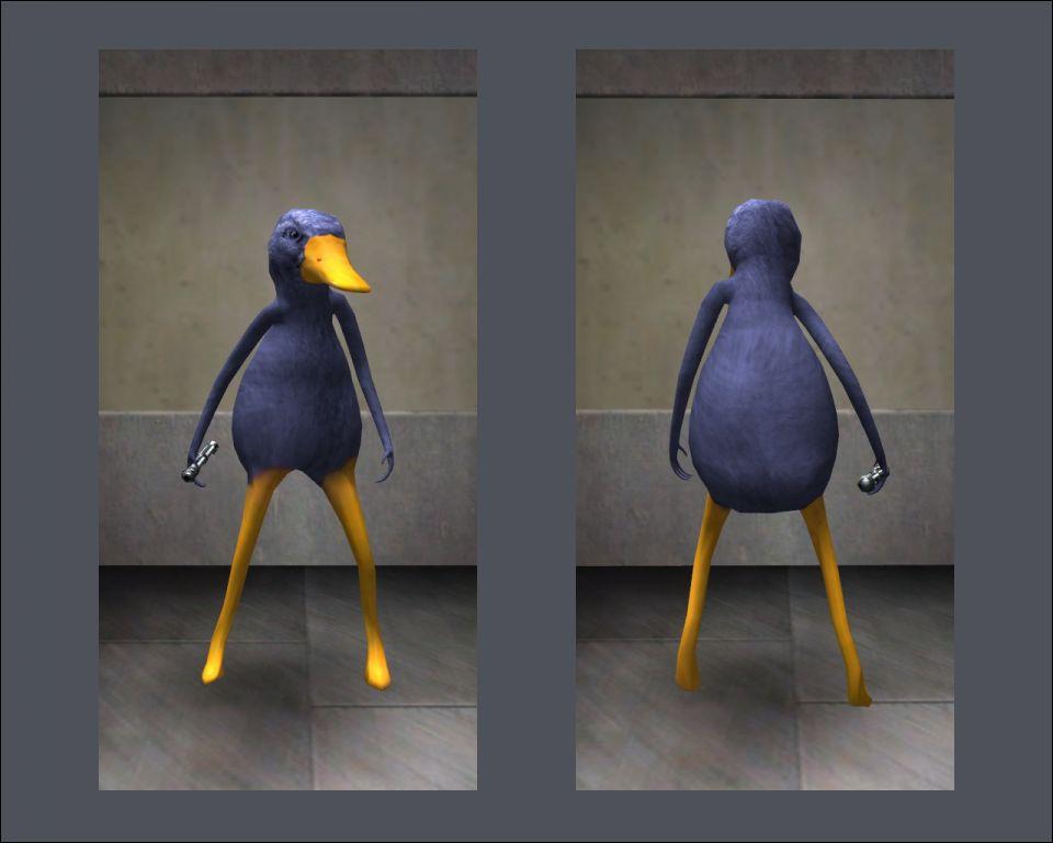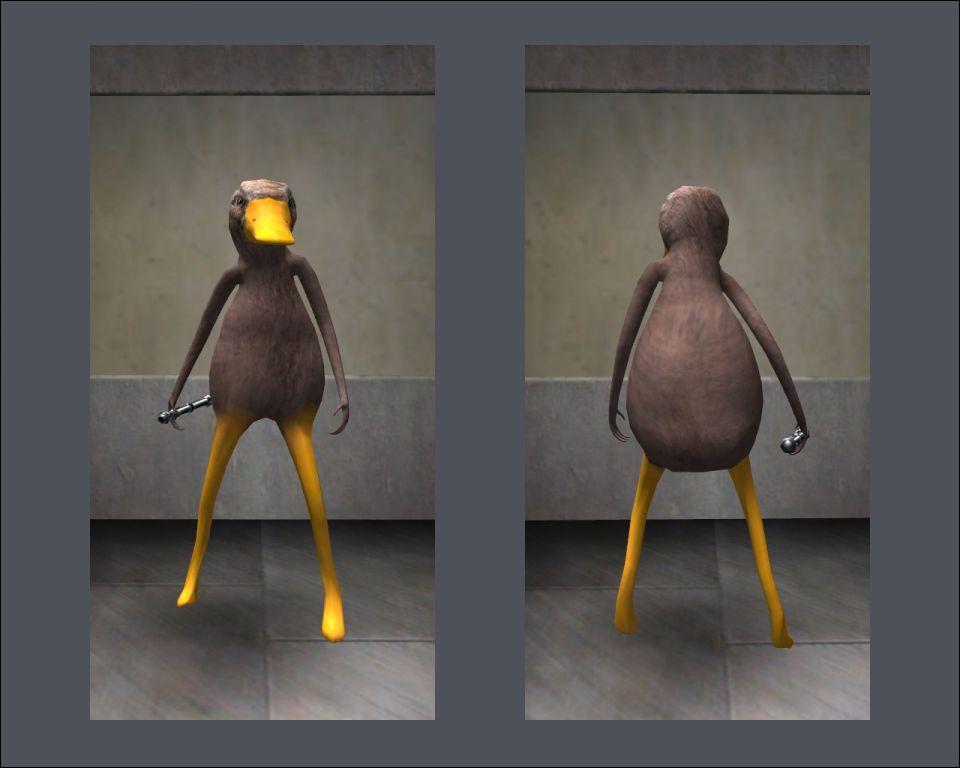 COMMENTS: This is my first real model for JK2, and I'm very proud of it. It can be a bot, and it has a red and blue color version as well. Should be fairly fun to run around as a duck. At least, it's the skin I'll be using myself for most of my JK2 days, so can be nice to see me like that if you play with me a lot!