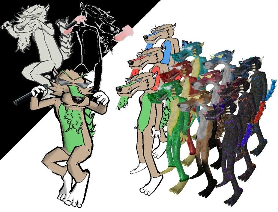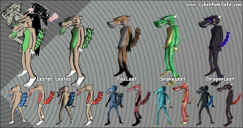 Contains Lester Leetos Cartoon (True 2D), Lester Leetos Cell Shaded, Dragon Leet, Snake Leet, Fox Leet, all with team variants. As well as Sketch and evil lester without team variants.