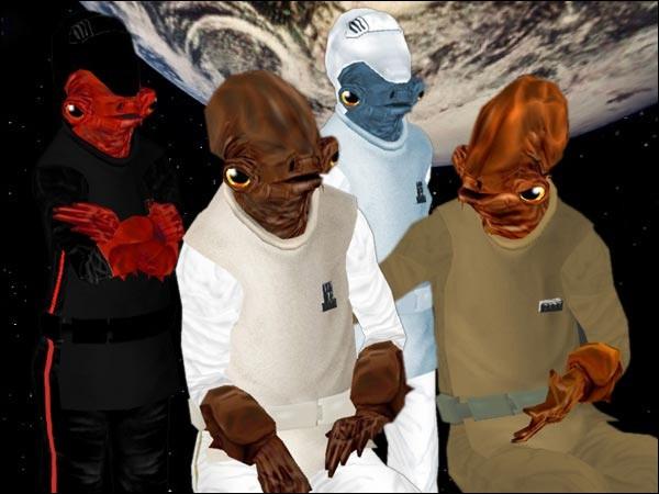 Ackbar (taken from www.starwars.com) : The commander of the Alliance Fleet, Admiral Ackbar led the Rebel capital ships into the Battle of Endor. A member of the Mon Calamari species, Ackbar and his people manned the distinctive warships supplied to the Rebellion by that aquatic culture.