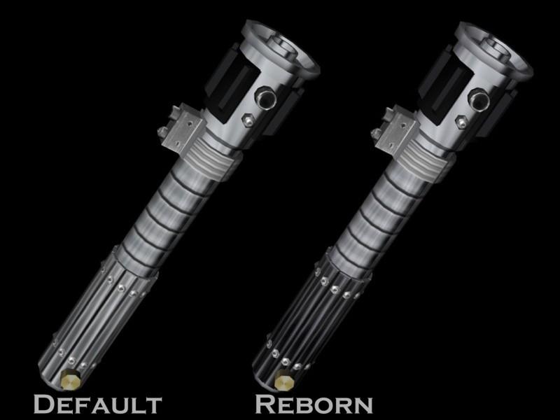 I won't lie. I hate the Mara Jade MotS cover art lightsaber. The version created by Jeffrey Parks is much better. I used it as part of the inspiration for the Bryar Saber, and I felt I shoud make the model. As with the Luke Saber, three files are included. Mara_default is self explanatory. Mara_saber is mod compatible. Mara_reborn has a slightly different texture and replaces the reborn saber.