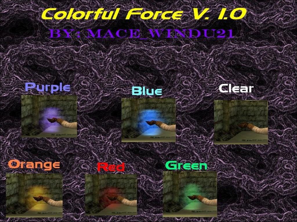 1. Everyone who contributed to the assembled_jedi_kyle_mod, because the Orange force, used in this mod, actually came from