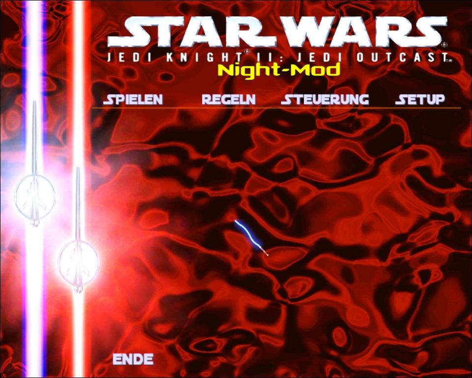 DESCRIPTION: After some time I finally release Night-Mod. I started to create it on my old name Nightfighter, but I'm releasing it over my new name Dark*Knight. Night-Mod is a small modification, which changes only the look of JK2. I changed the whole menu-colour to a reddish one. The sabers, and all bubbles look different now. Other things like the skies or the chat-icon are changed too.