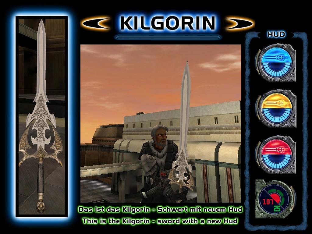 Contents: This is the Model of a Kilgorin - sword, which it really gives. One can look at the original in the provided screen. Beside the Model, also the Hud is suitably the sword changed. Furthermore also the sound files are changed, so that the sword gets a metallic sound. These sound files are not however from me.