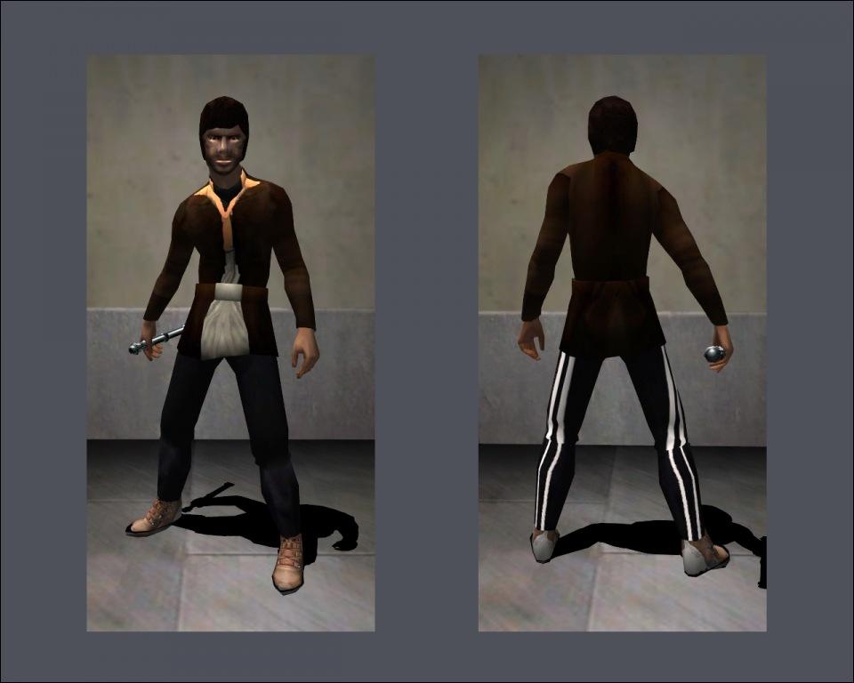 Bugs: There are texturing issues on the neck, the collar, and the pants.