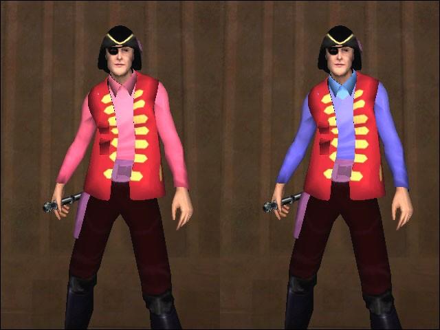 This is Version 2 of my Captain Feathersword skin, the chin strap is gone (Thanks to Barada for the shader) and I have added a taunt, and updated his pants.