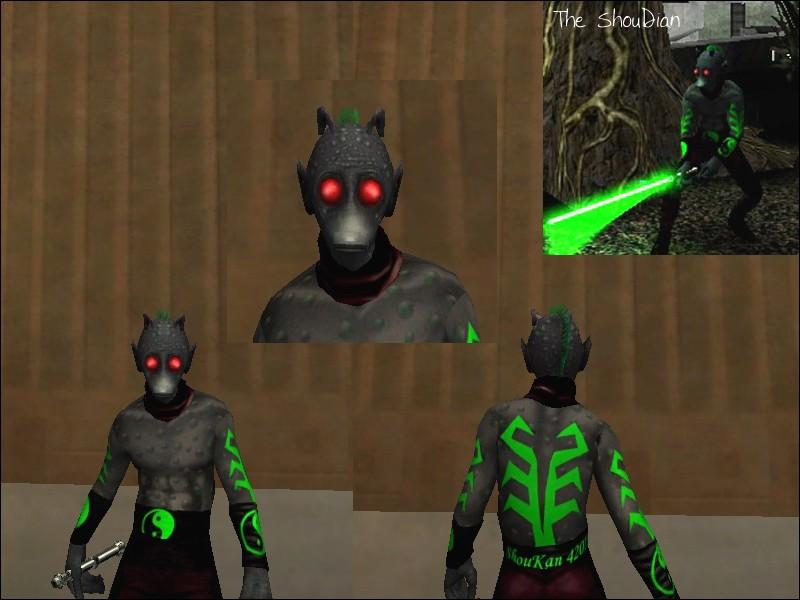 Thanks go to the effort of the original skinner of "Azmo", Buu(is what is listed on pcgamemods but i dont have a read me for the skin sorry) And to DragonLord, the creator of the "Holiday rodian" skin who i used the texture for the jeans for the blue model. Also thanks to model creators from Lucas/raven whom it is all based on. And thanks to my skin model {CT} Rhaine for help in creation of the icons. And to Shoukan for changing his mind so many times it gave me time to come up with the blue version which is my favorite.