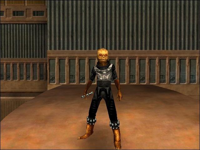 This is a trandoshan with a metal armor, and leather pants.