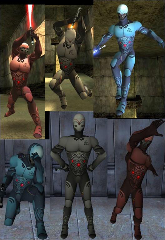 Description: Great model made by ksk h2o. I reskinned it completely to an original character. Think of him as an earlier prototype of a robot jedi...or something. He has cables and cords going around his body and the number and barcode to identify him. I gave him Galak's taunts and sounds because Galak sounds much like a robot. They fit perfectly with Prototype. Enjoy!