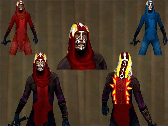 Decorated hood with flame patterns and noticable Deep yellow eyes. I have