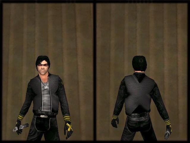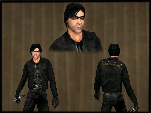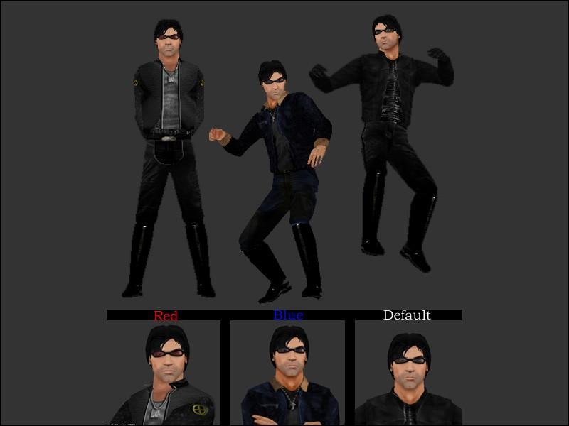 Default: A sort of Matrix Neo-esque style skin with and insignia on the