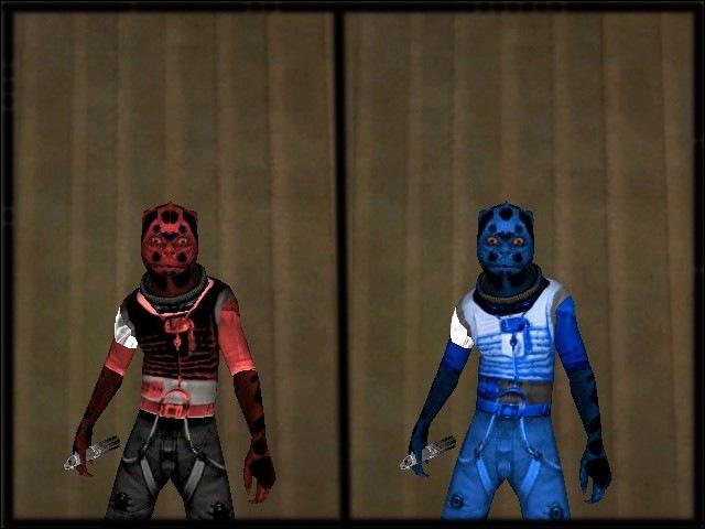 The blue version is Jedi kinda, The red is mainly the same as default but it has red clothes. If someone know how to fix caps (when saber cuts of bodypart) on trandoshan plz tell me as its quite annoying (it doesnt work on reelo or normal trandoshan either)