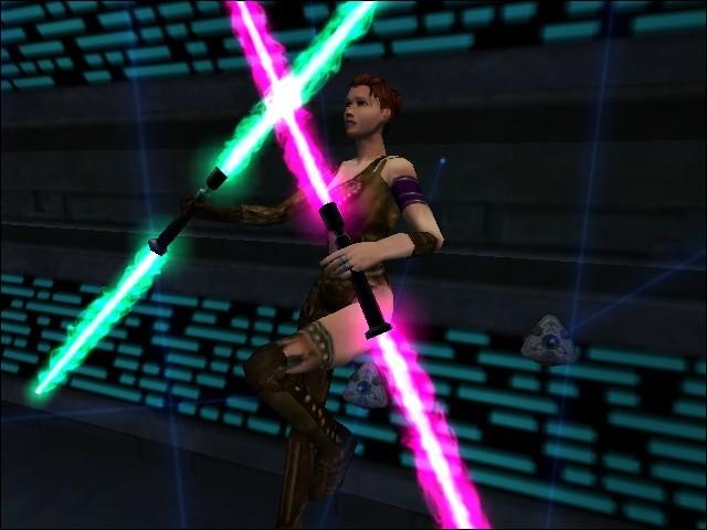 She continued her training in secret - mastering the art of weilding two, double-bladed sabers in the proccess. In addition, she has learned to use the "dark powers" extensively.