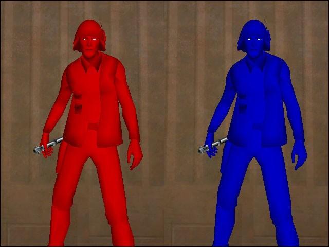 DESCRIPTION: The default skin is all black except the hands, the blue skin is all blue including