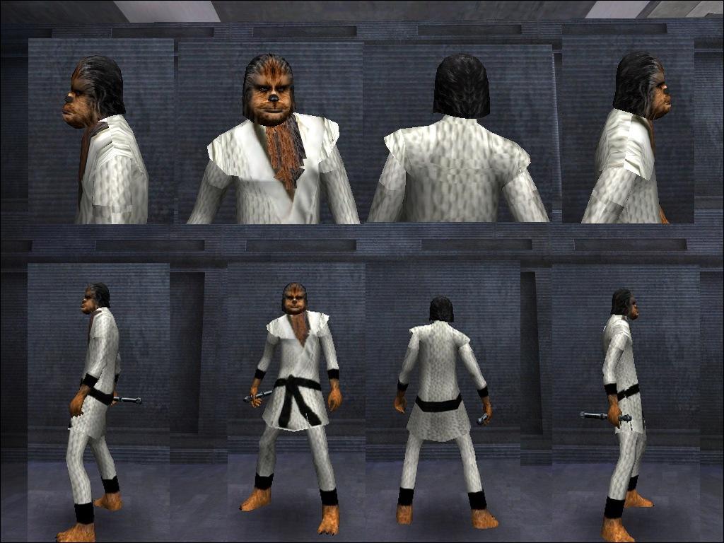 Credits: Goober, for putting the karate suit on the wookiee, and Major Clod for making the original wookiee skin.