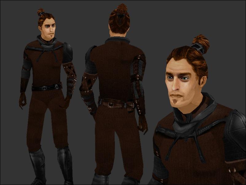 DESCRIPTION: It's a default jedi trainer with no armor, and the lacey stuff on the front has been reduced, brown clothing, with black accents.
