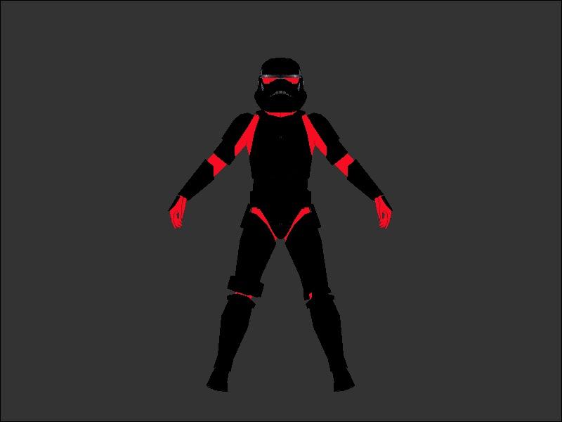 DESCRIPTION: This is my first attempt at skinning, and I know it isn't very good. The classic Stormtrooper is now black with a red bodysuit underneath and red eye lenses.