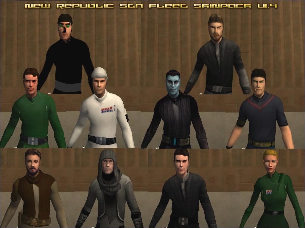 Skin name : Darth Angelus, Simon, Comm, Matt v3.2, VDJ, Jennifer Jade, Cyrus, Ocato and a New Republic Officer.