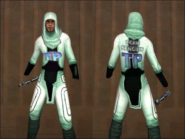 Just put the team_penguin.pk3 in GameData\base in your JK2 game directory, and it is selectable among the usual Multiplayer Skins, or for custom skins see additional info ABOVE..