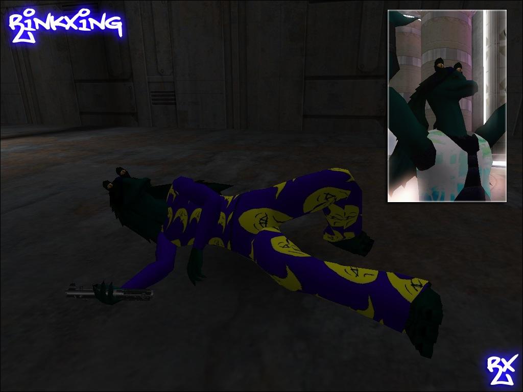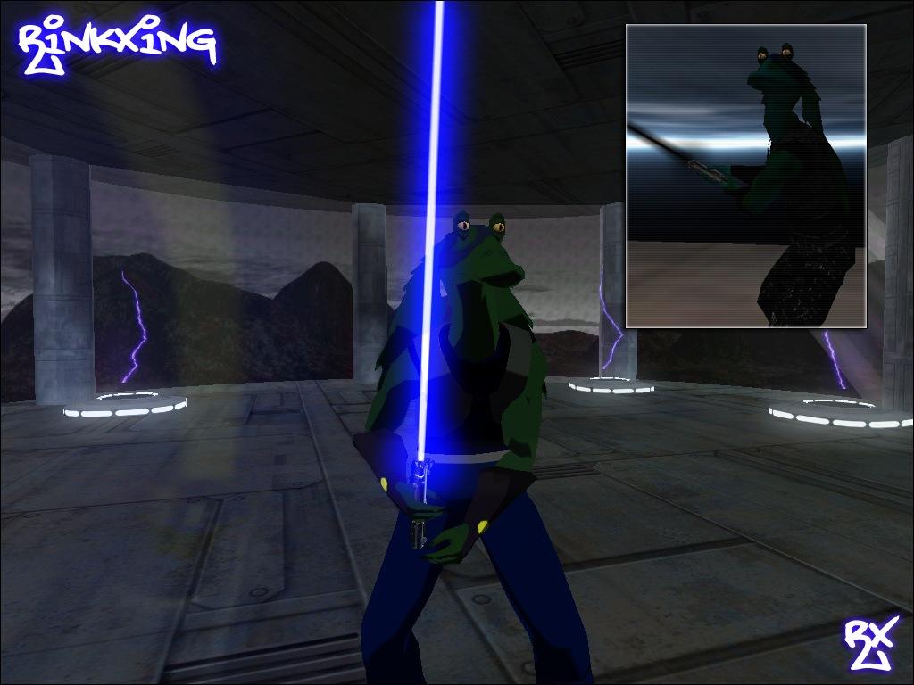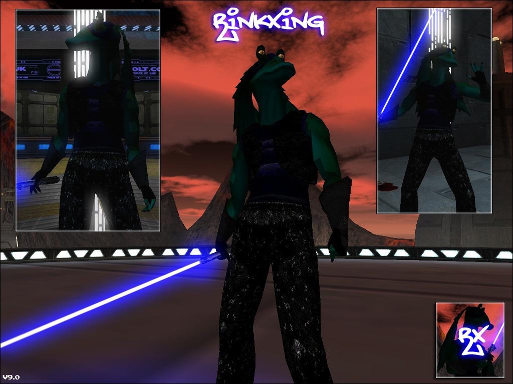 Here is my little pride and joy. My personal skin. A reskin of a few models, The gungan model by major clod, totally re-amped, you thought gungans were lame? think again. CyberRink, a reskin of grayfox by ksk_h20, with team support and new sounds. Cel shaded rink, hologram rink, both skins with added shaders.