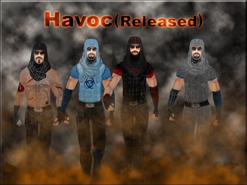 This is a reskin of the in-game Reborn model. It's a personal skin I made for my clanmate and friend, [TMBJ]Havok. It's actually been a WIP since back when I was in {ICoP}, almost a year ago. I finally got off my lazy butt and finished it in these last two days, when all I had done so far was the head, hood, and part of torso for the default. I must say that my favorite version is the red one, as I did the bare chest and back from scratch using a rather ingenious and most 1337 method. For those of you who'd care to know, use the Shadowtrooper body armor as a foundation, and add highlighting and shading to get a rather realistic musculature. The only pain is getting the edges of the model to line up.