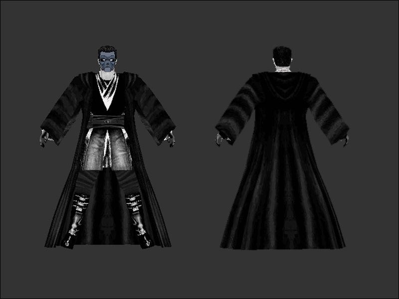 I used for start point the skin called prequel jedi. I used the sounds of Marka Ragnos, He�s truly had great sounds that perfectly can used for sithlord skins. I create this skin about 1 hour, but it looks great, red eyes and black robe. I made this skin for my only use, but i think i release it, couse it�s really good skin. :) I also add an npc form of this skin in to the Zip.